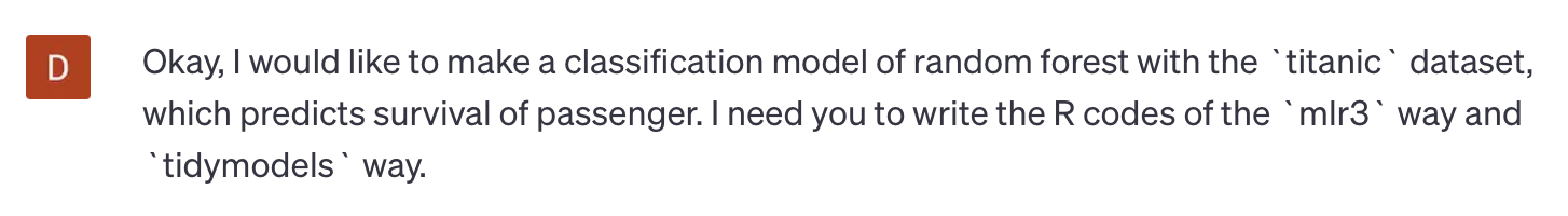 * Packages: mlr3, rpart